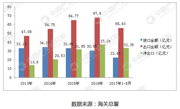 出口方面亦有不俗表現(xiàn)。據(jù)海關總署數(shù)據(jù)顯示,2016年,我國凈出口鋰離子電池達37.25億美元。值得注意的是,自2012年我國鋰離子電池出口金額首次超過進口金額之后,我國鋰離子電池凈出口數(shù)據(jù)已連續(xù)4年增長,我國已從鋰離子電池的凈進口國完全成長為成為鋰離子電池的凈出口國。2017年1-9月,我國鋰離子電池凈出口達到33.35億美元,相比上年同期增加了8.59億美元,繼續(xù)保持快速增長態(tài)勢。