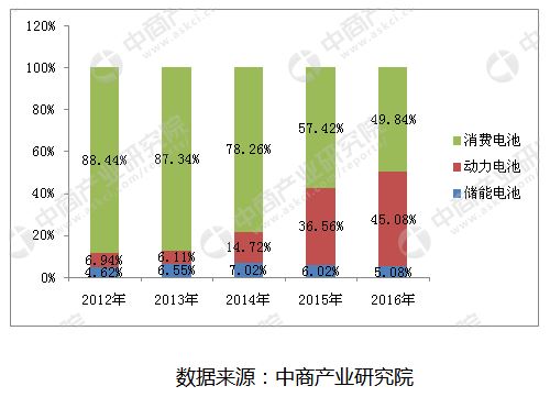 鋰離子電池具有能量密度高、循環(huán)壽命長、充放電性能好、使用電壓高、無記憶效應、污染較小和******性高等優(yōu)勢。鋰離子電池經(jīng)過多年的發(fā)展,工藝已經(jīng)趨于成熟,價格逐步下降,加上******政策助推,導致鋰離子電池在電池行業(yè)的市場份額持續(xù)提升。鋰離子電池的終端應用包括消費電池市場、動力電池市場及儲能電池市場。其中,消費電池市場是******的終端應用,2016年在鋰離子電池的終端應用中占到49.84%。動力電池市場是鋰離子電池的第二大終端應用,2016年在鋰離子電池終端應用中占比達到45.08%,是近年來增長***快的領域。